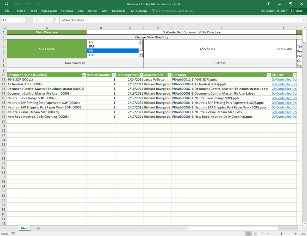 A goal of ABB Auburn is to become ISO-9001 certified and this requires some form of document control. My document control system presents users with the most up to date approved files available to them. The purpose is to make it impossible for individuals to use incorrect documents when doing their work and make sure documents are centralized. Admins are able to create, revise, approve, and import files into this system based on templates. All files have the same strict naming convention as outlined in the manual. I am not able to provide a copy of this file because it is heavily tailored to ABB’s servers in Auburn, but the attached manuals should provide a good idea about it’s functionality.