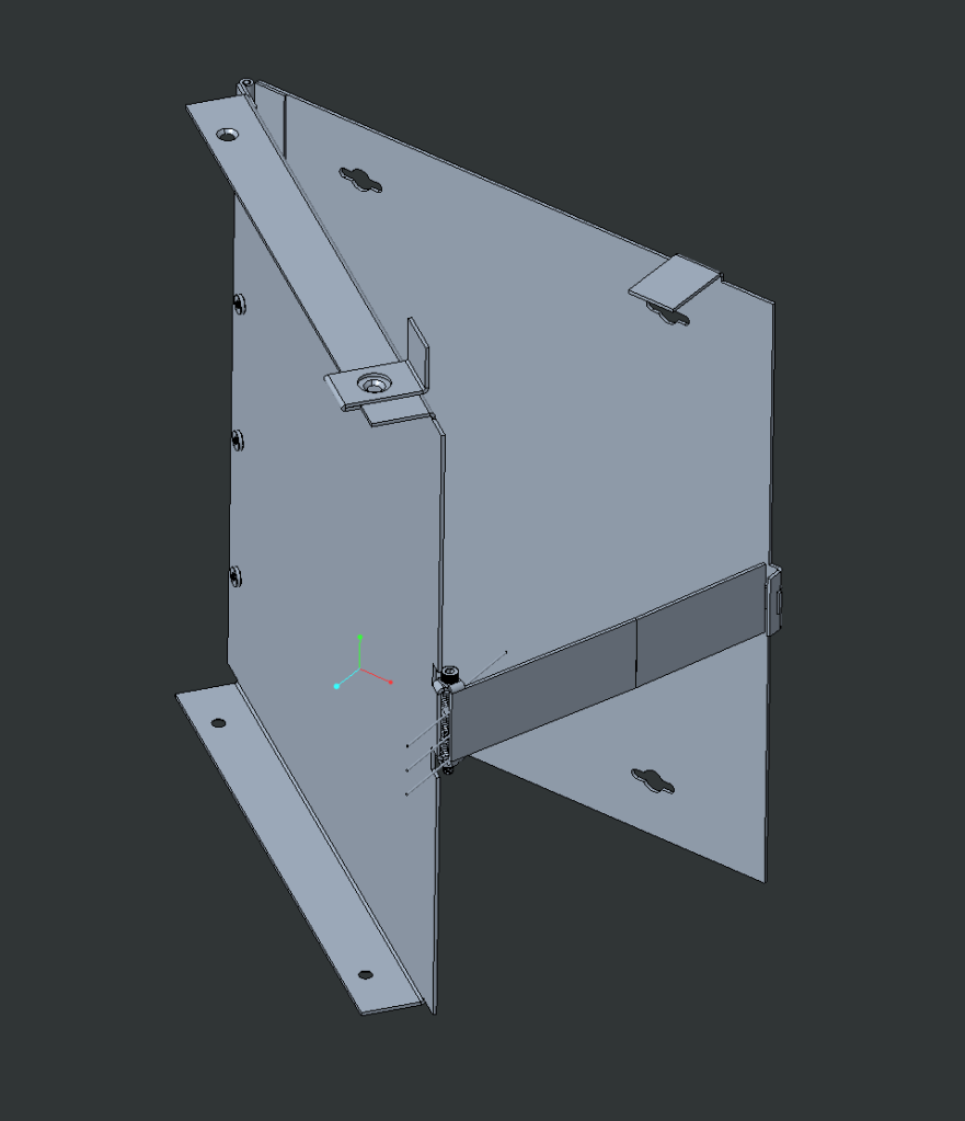 An independent project given to me at Savant was to design a product mount with a hinge and kickstand. This hinge was to open up to a specified angle so electricians could easily access the side of the product. Other design constraints included the use of sheet metal, off-the-shelf parts for ease of prototyping, and a locking mechanism to secure the product in it’s retracted position.